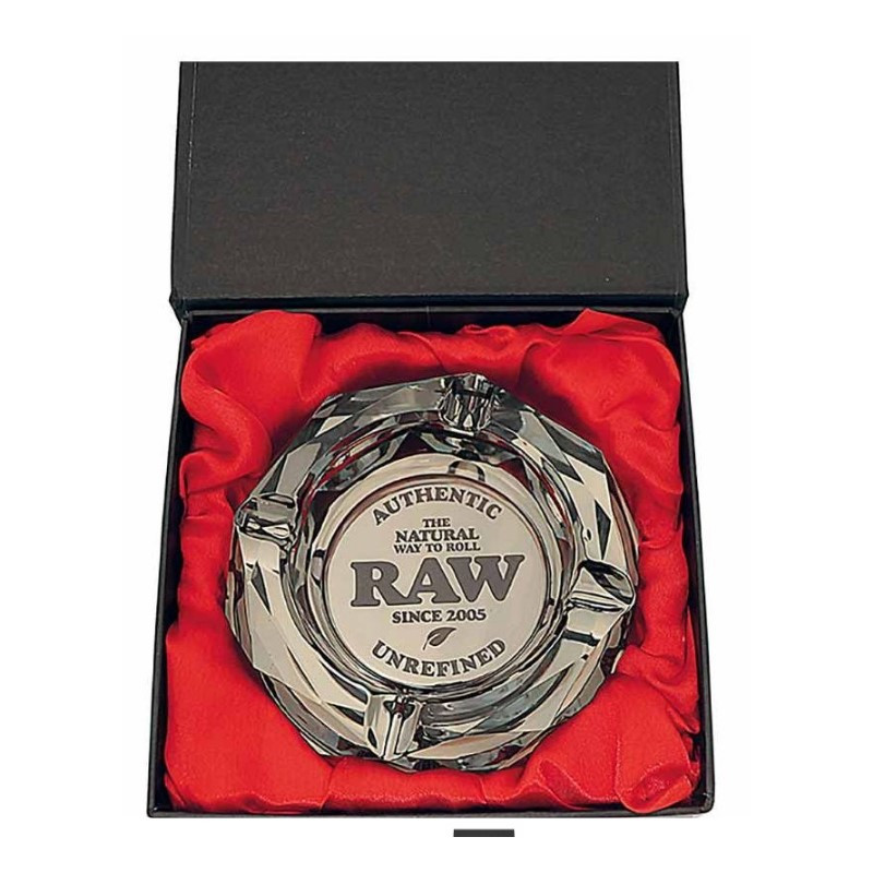 RAW lo quiso de 1,6 kg porque se inspiraron en el antiguo cenicero de cristal VS de 1,5 kg y querían superarlo. Aunque este último estaba fabricado al estilo clásico con plomo, para este nuevo cenicero se emplea moderno cristal sin plomo porque, ¡nadie quiere tocar el plomo!