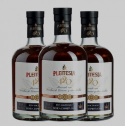 Pleitesía es una mezcla de rones de 6 a 25 años envejecidos en barricas de roble francés, que alguna vez contuvieron coñac, macerado con semillas